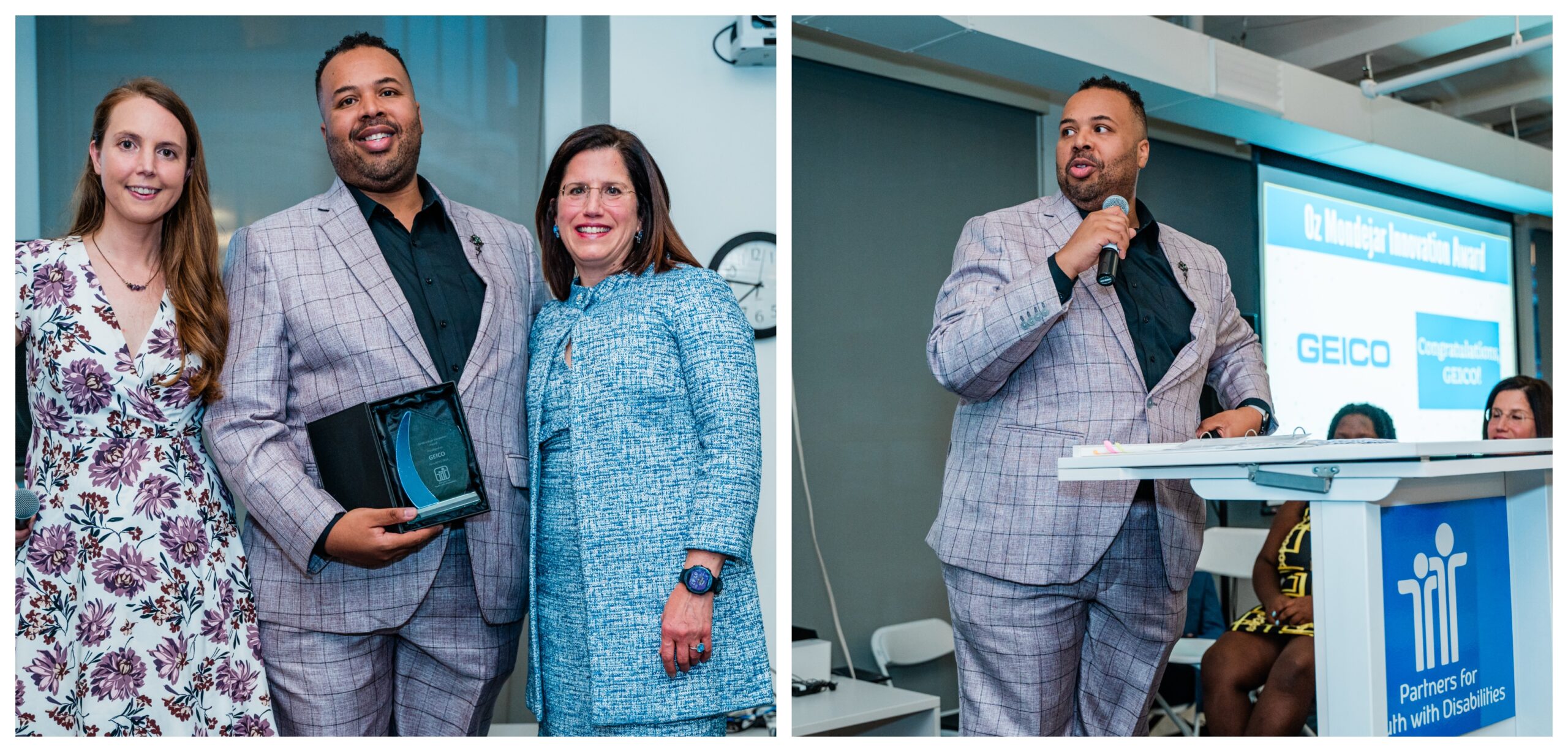The Oz Mondejar Innovation Award was presented to GEICO for providing creative solutions for increasing educational and employment opportunities for people with disabilities. Social Impact & Philanthropy Manager, Mac Stephen, accepted the award on behalf of GEICO. During his speech, Mac said, “GEICO is proud to have joined forces with PYD to support in the areas of developing leaders and provide resources so students with disabilities can continue their education. Together we are making a positive difference that we all should be proud of.” We are grateful for our partnership with GEICO!